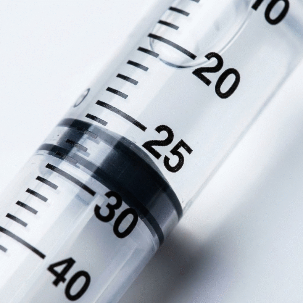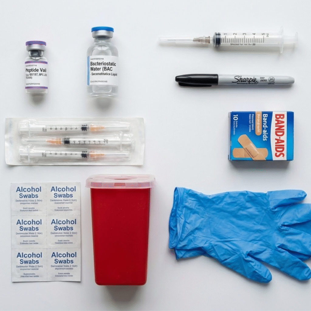 Syringes. I recommend a 1cc (1ml) syringe with a 28-30 gauge needle, half-inch long. This is what most people use for subcutaneous injections. You can find these on Amazon or through your peptide supplier.